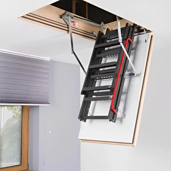 The LMF 60 Fire Rated Metal Attic Ladder is a state-of-the-art solution for safe and convenient access to attic spaces while providing superior fire protection. Designed with a 60-minute fire resistance rating, this attic ladder offers enhanced safety by slowing the spread of fire between floors. Its insulated hatch minimises heat transfer, improving thermal efficiency in homes and commercial buildings. Engineered for easy operation, it features a smooth opening mechanism controlled by a rod, ensuring hassle-free access when needed.